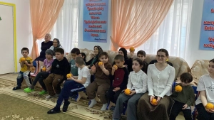 В завершение мероприятия Дед Мороз и Снегурочка поздравили детей, подарили детишкам апельсины и материалы для творческого развития.